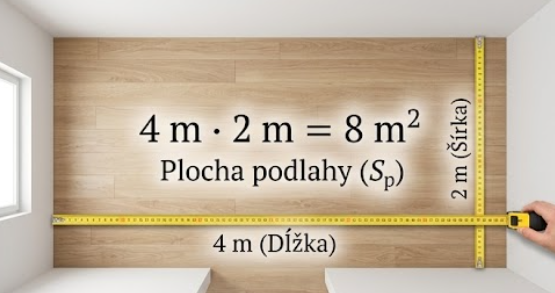 Príklad: Ak má izba 4 m na dĺžku a 2 m na šírku: