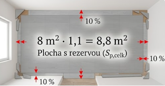 8 · 1,1 = 8,8 m² (Toto je plocha, ktorú musíte reálne kúpiť).
