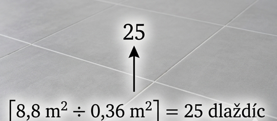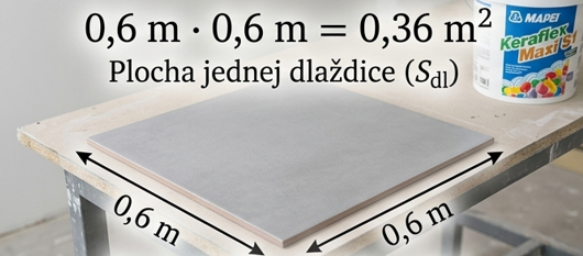 Príklad: Ak má dlaždica rozmer 60 x 60 cm (teda 0,6 x 0,6 m):
