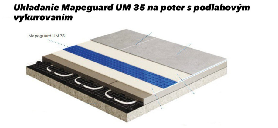 Mapeguard UM 35 zaručuje rovnomerné rozloženie tepla v podlahových vykurovacích systémoch, vrátane tenkovrstvových poterov.