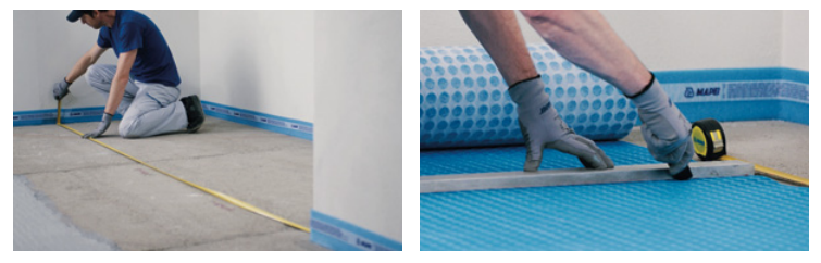 Mapeguard UM 35 je polopriehľadný materiál, čo uľahčuje kontrolu rozloženia lepidla pod ním a zároveň umožňuje vidieť všetky prvky prechádzajúce cez povrch (napr. podlahové vpuste). Tým sa zjednodušuje rezanie pásov.