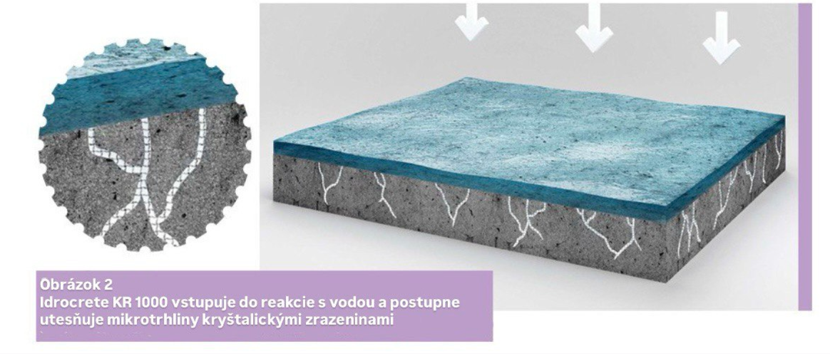 Idrocrete KR 1000 je prášková prísada vyrobená zo špeciálnych hydrofilných komponentov, ktorá po pridaní do betónovej zmesi znižuje priepustnosť vytvrdnutého betónu. Počas celej životnosti betónu reaguje s vodou a premieňa vedľajšie produkty hydratácie cementu na kryštály, čím znižuje pórovitosť a mikrotrhliny betónu.