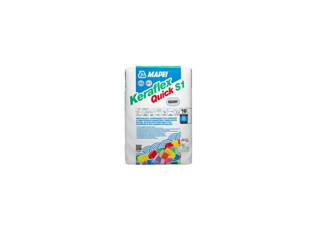 Keraflex Quick S1 je špeciálne, rýchlo tvrdnúce cementové lepidlo so zníženým sklzom, určené na veľmi rýchle tenko- a stredne vrstvové lepenie obkladových prvkov (do 10 mm) z keramiky, prírodného kameňa a betónu, citlivých na škvrny a fľaky.
