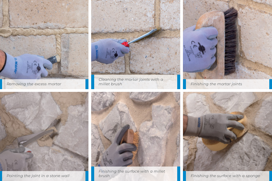 Pri škárovaní pohľadového muriva maltu jemne vtlačiť do škár, zvyšky okamžite odstrániť.