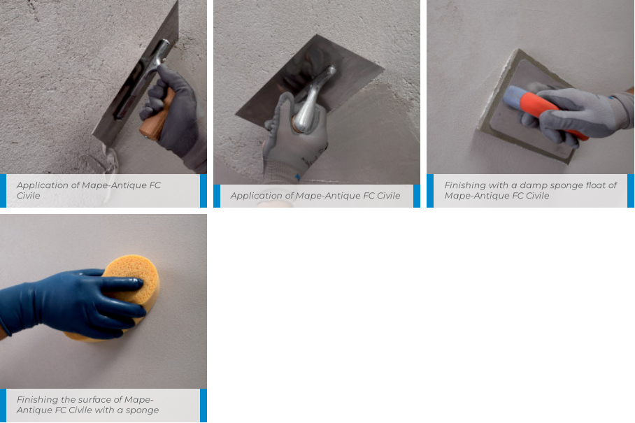 Mape-Antique FC Civile je určená na zhotovenie jemnej finálnej povrchovej úpravy s prirodzeným vzhľadom na:
