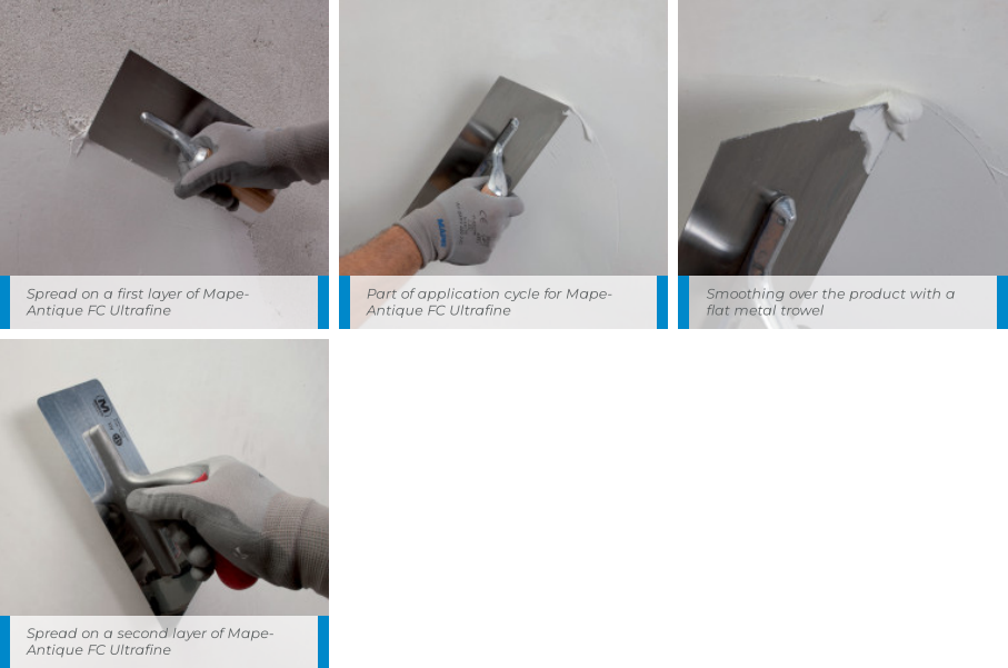 Mape-Antique FC Ultrafine je určený na zhotovovanie veľmi jemných finálnych povrchových úprav na: