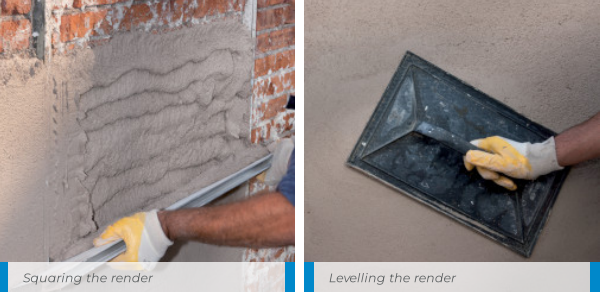Po zmiešaní s vodou vzniká plastická, thixotropná malta ľahko aplikovateľná striekaním alebo hladidlom na vertikálne plochy a stropy.