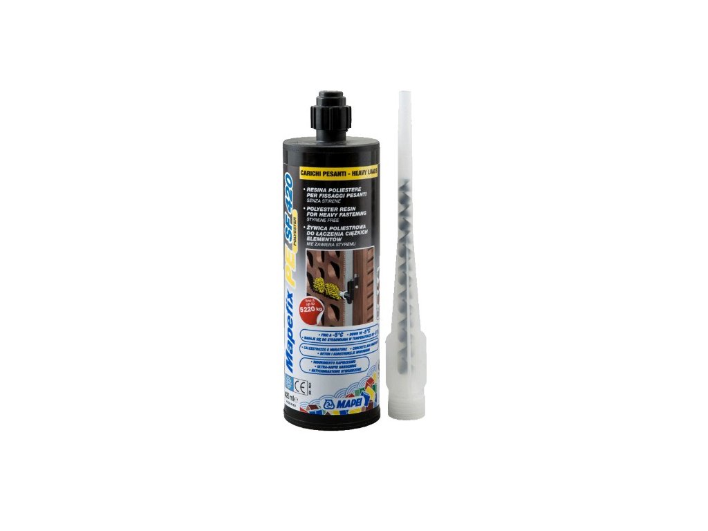 Mapefix PE SF je dvojzložkové lepidlo na báze polyesterovej živice bez styrénu, určené na chemické kotvenie kovových tyčí do vopred vyvŕtaných otvorov v stavebných materiáloch. Je špeciálne vyvinutý na chemické kotvenie oceľových a pozinkovaných závitových tyčí a rebrovaných výstuží, ktoré prenášajú vyššie zaťaženie do pevných alebo poréznych podkladov, ako je nepraskajúci betón, ľahký betón, prírodný kameň, tehla, drevo alebo zmiešané murivo.