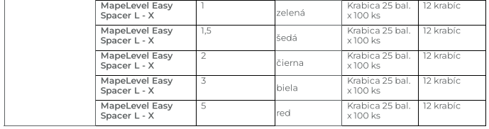 MapeLevel Easy Spacer L-X (krížové podložky) – dostupné vo veľkostiach 1 / 1,5 / 2 / 3 / 5 mm